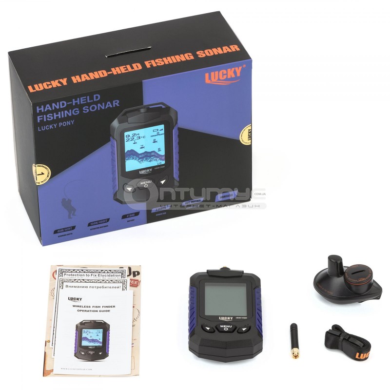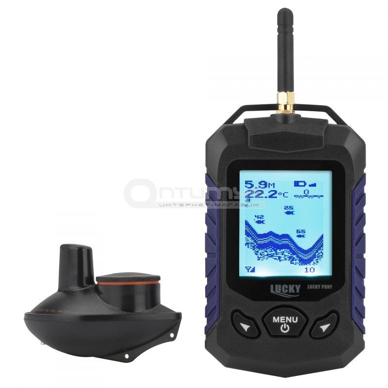 Ехолот Лаки має в комплекті бездротової датчик, який працює на частоті сканування в 125 кГц і може розкривати свій промінь до 90 градусів, що дає максимальний огляд за один прохід датчика . Максимальна глибина сканування таким датчиком до 40 м, що більш ніж достатньо для всіх річок і озер. А дальність дії радіосигналу до 60 м - цього, в більшості випадків, вистачає для будь-якої рибалки з берега і човни. Даний ехолот можна використовувати навіть для зимової риболовлі, але при температурі нижче -5 градусів може пропадати зв'язок.