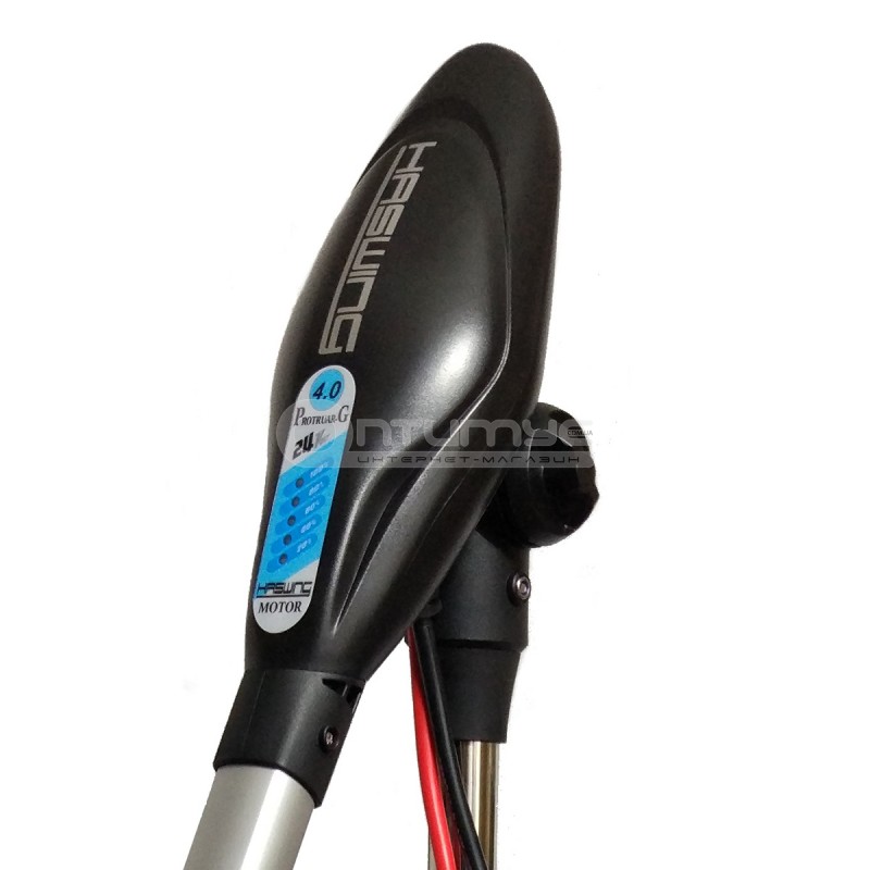 Серія електромоторів Хасвінг Протруар G оснащена бесщеточними двигунами і відмінно підходять для переміщення великорозмірних човнів на річках з великим плином. Потужність на валу у даного електродвигуна 3 кінські сили. Але якщо порівнювати за тяговими характеристиками, то тягова потужність можна порівняти з бензиновим двигуном у 5 кінських сил. Не плутайте цю характеристику, накладаючи її на швидкісні дані електромотора. Так як швидкість обертання гвинта цього електромотора 1100 об/хв., що в 4 рази менше швидкості обертання гвинта бензинової такої ж потужності. Цей потужний двигун оснащений мікро-ступінчастим регулюванням рівня швидкості і чекою безпеки. Мотор можна легко нахилити і вийняти з води, а висота триммера регулюється за допомогою швидкого замку, так що ви можете переміщатися практично на будь-якій глибині.