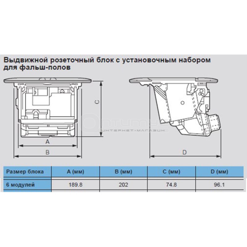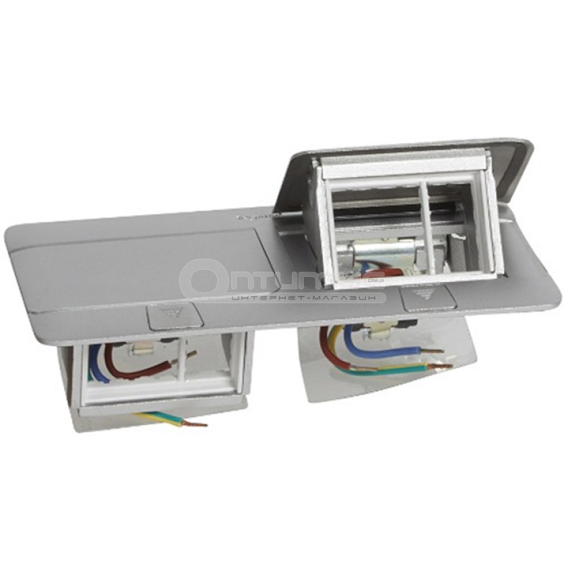 Висувний розетковий блок Legrand на 6 модулів 54012 (алюміній) застосовується для установки в столах і фальшполах, бетонну підлогу має ступінь захисту IP40, виготовлений з металу і має покриття спеціальною фарбою. Це хороший варіант, встановити приховані розетки, який може бути використаний для установки на кухні, на робочих місцях в офісі або ж в конференц-залах. Плавно висувається після натискання кнопки і може бути укомплектований електроустановочними виробами Legrand серії Mosaic. Матеріал з якого виготовлений люк не містить галогенів, вогнестійкий і самозатухаючий, стійкий до корозії і перепадів температури.
