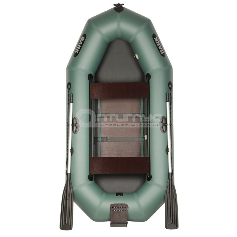 Надувний човен Барк B-260NPD розрахована на двох осіб. До конструкційним особливостям даної моделі відноситься наявність балонів діаметром 34 см, Днищевой сланевие пайоли, які допомагають човні краще плисти по водоймі і витримують людини в положенні стоячи.