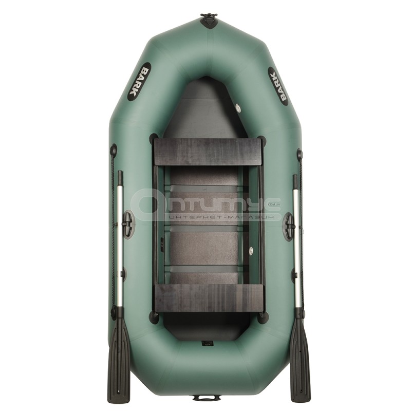 На тримісній надувному човні Барк B-280D сидіння (кількість 2 штуки) рухливі, тому сидячи можна зайняти найбільш зручну позицію для веслування або лову риби . ПВХ матеріалу виготовлений в п'ять шарів, за рахунок чого на нього не впливає бензин, хімічні речовини, масла і прямі промені палючого сонця.