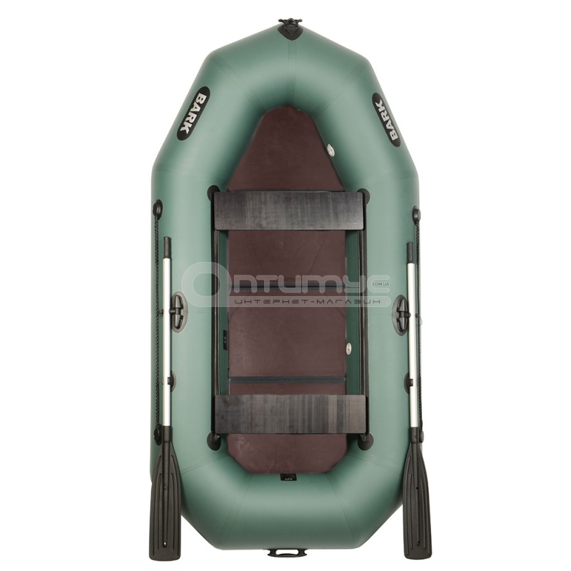 Надувний човен Барк B-270PD + слань-книжка розрахована на перевезення і перебування в ній трьох чоловік. За рахунок збільшеного діаметру балонів, які становлять 38 сантиметрів, вантажопідйомність судна дорівнює 300 кг.