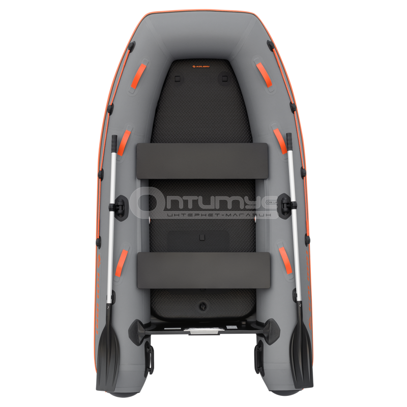 Повнорозмірна весельна група з поліпшеними гідродинамічними характеристиками забезпечує комфортне пересування. Монолітні опори кріплення транця, в кілька разів міцніші за традиційні стрічки ПВХ, гарантують надійність.