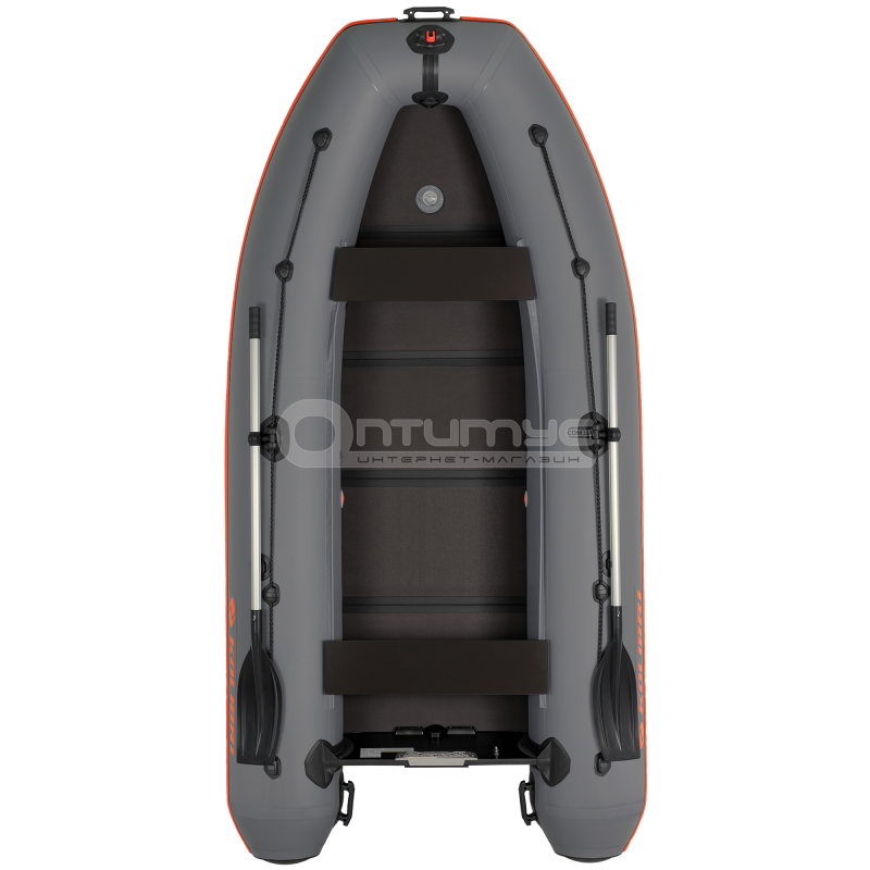 Його міцність та стійкість до пошкоджень забезпечує п'ятишарова тканина ПВХ з щільністю 950 гр/м². Пайол слань-книжка додає легкості у використанні, а підсилення ліній кіля і транця днищевим брусом 60 мм забезпечує відмінні морехідні якості.