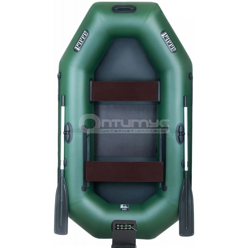 Човен надувний 1 шт., сидіння стаціонарне 1 шт., транец, Сідін рухливе - 1 шт., весла 2 шт., слань, насос 1 шт., ремкомплект 1 шт., сумка пакувальна 1 шт., набір документів |