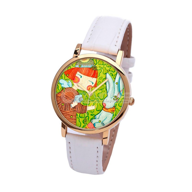 Наручний годинник TIA Дівчина з кроликом білий ремінець, сріблястий корпус