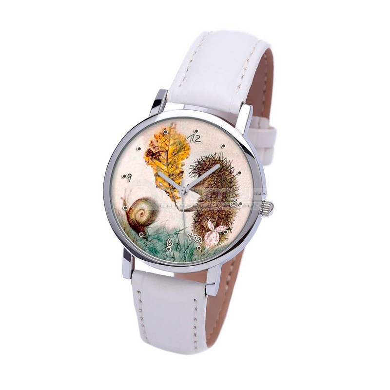 Наручний годинник TIA Їжачок і равлик, білий ремінець, сріблястий корпус