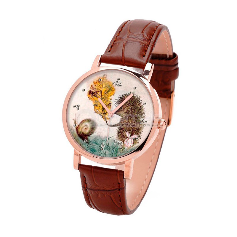 • Наручний годинник TIA Їжачок і равлик, коричневий ремінець, корпус рожеве золото