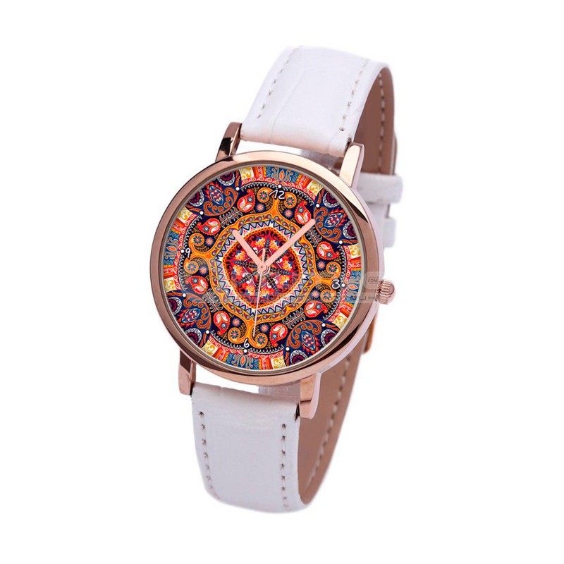 Наручний годинник TIA Багатоколірний Бохо, білий ремінець, корпус рожеве золото