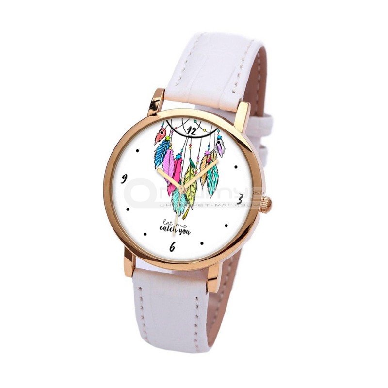 Наручний годинник TIA Дозволь мені зловити тебе, білий ремінець, золотистий корпус