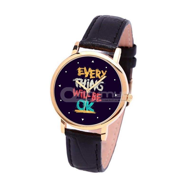 Наручний годинник TIA Все буде добре чорний ремінець, золотистий корпус