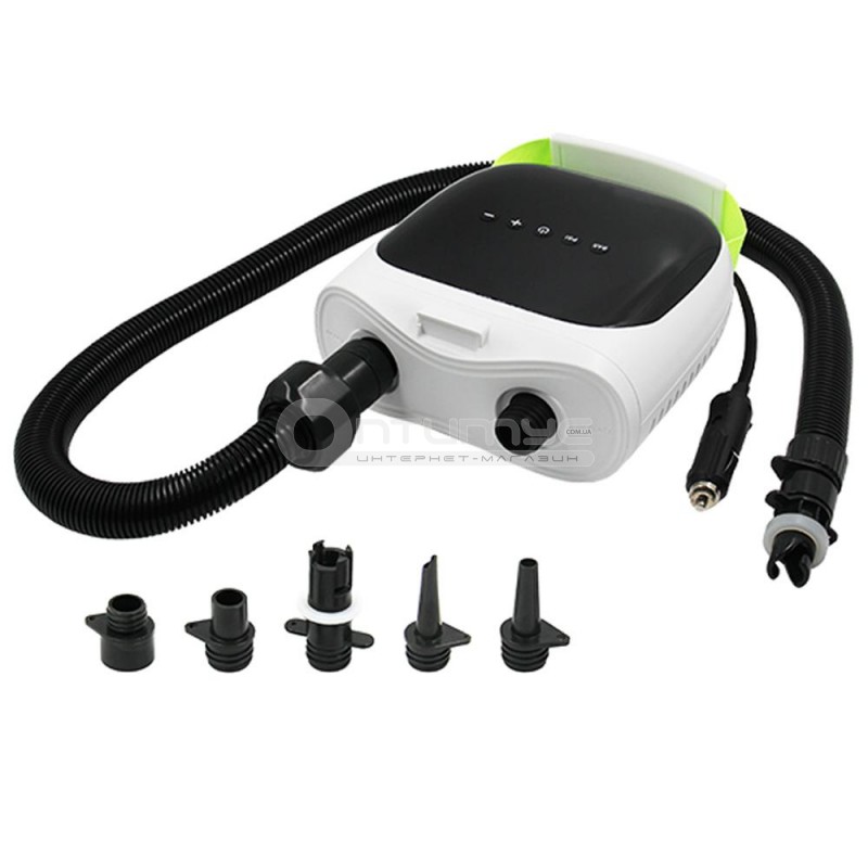 Для SUP, човнів; Вага, кг: 1.4; Принцип накачування: центрифуга і поршневий; Механічний регулятор тиску; живлення: Від вбудованого акумулятора 4000 мАг, Комплектація: Насос, шланг, Usb кабель для зарядки, силіконові прокладки |