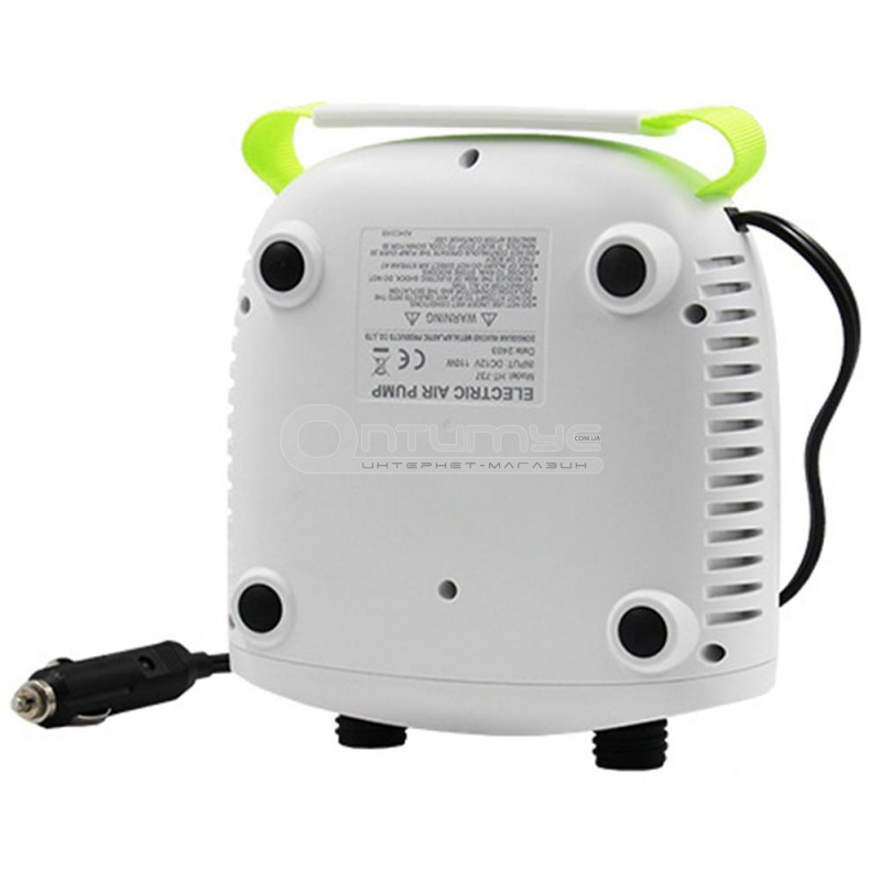 Живлення насоса можеть бути за рахунок вбудованого Li-Ion акумулятора, ємність якого 4000 мАг. Але також, є кабель з штекером для прикурювача. Такий насос можна сміливо брати з собою на будь-який вид відпочинку на природі. І навіть якщо ви виїжджаєте на тривалу стоянку, він послужить вам, дозволяючи качати човен не один день без додаткових джерел живлення. А що б стежити за рівнем заряду акумулятора, в насос вбудований індикатор заряду.
