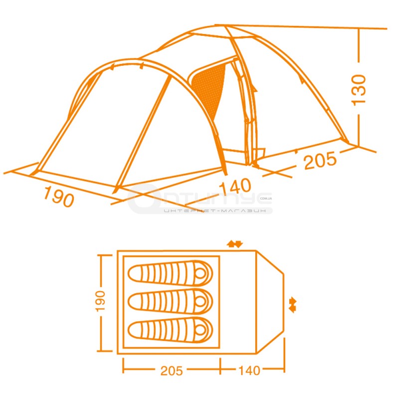 - Два тенту: вологостійкий зовнішній і «дихаючий» внутрішній.