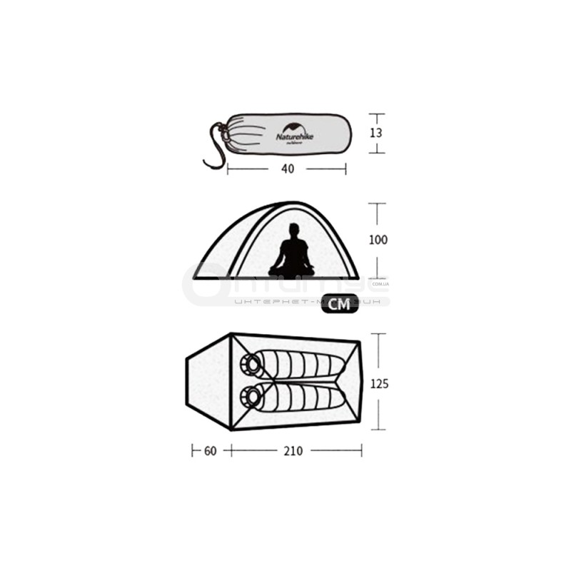 Намет Naturehike Cloud Up Ultra light 2 NH17T001-T green - двошаровий, надлегка. 2-х місний намет з алюмінієвими дугами і силіконовим тентом, зелена.