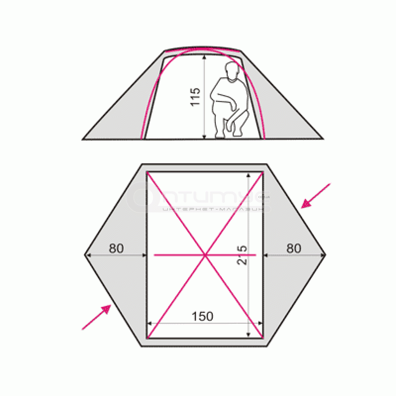Намет Terra Incognita Omega 2 пісочна. У великих тамбурах вистачить місця для спорядження та туристичної кухні. Два входи дають можливість прямого доступу в спальню і забезпечують ідеальну вентиляцію. Проста і швидка збірка і розбирання.