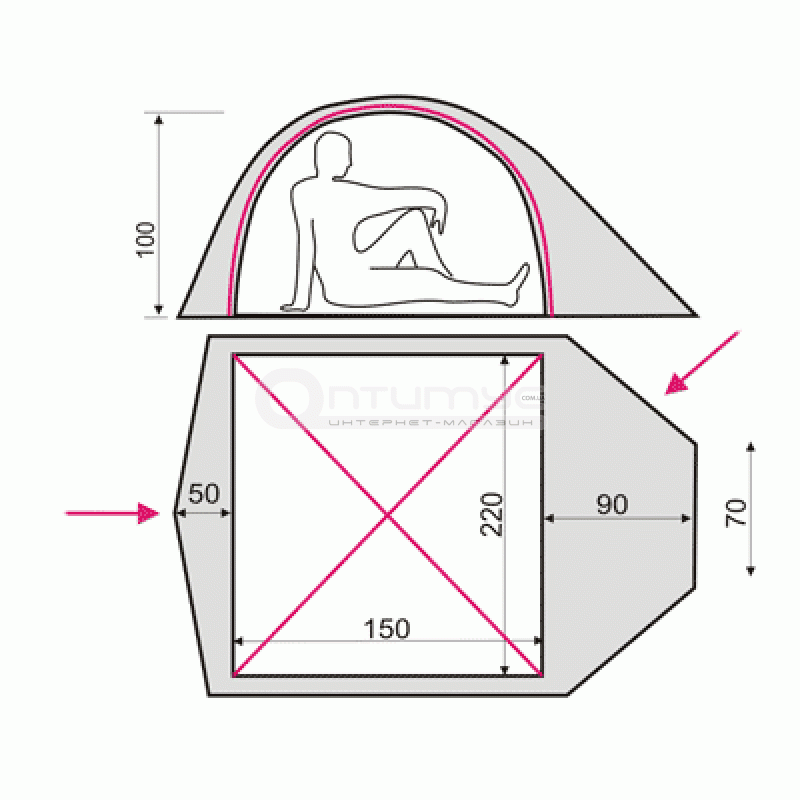 Легкий двомісний намет Terra Incognita Platou 2 Alu, що може використовуватись протягом всього року. У збільшеному передньому тамбурі вистачить місця для двох-трьох рюкзаків середнього розміру. Два входи дають можливість прямого доступу в спальню і забезпечують ідеальну вентиляцію. Проста і швидка збірка і розбирання.