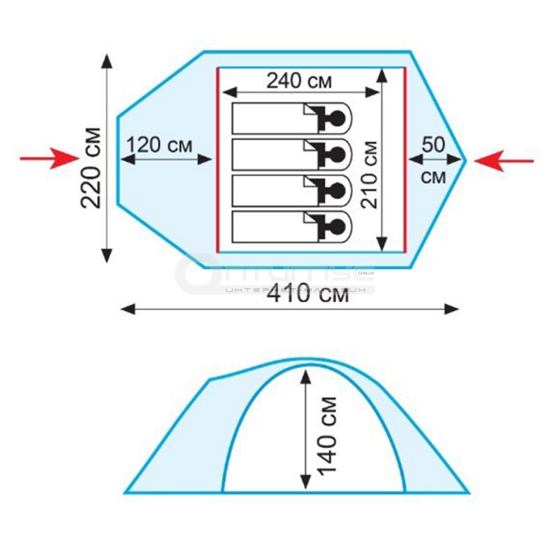 - Зовнішній тент намету стійкий до ультрафіолетового випромінювання
