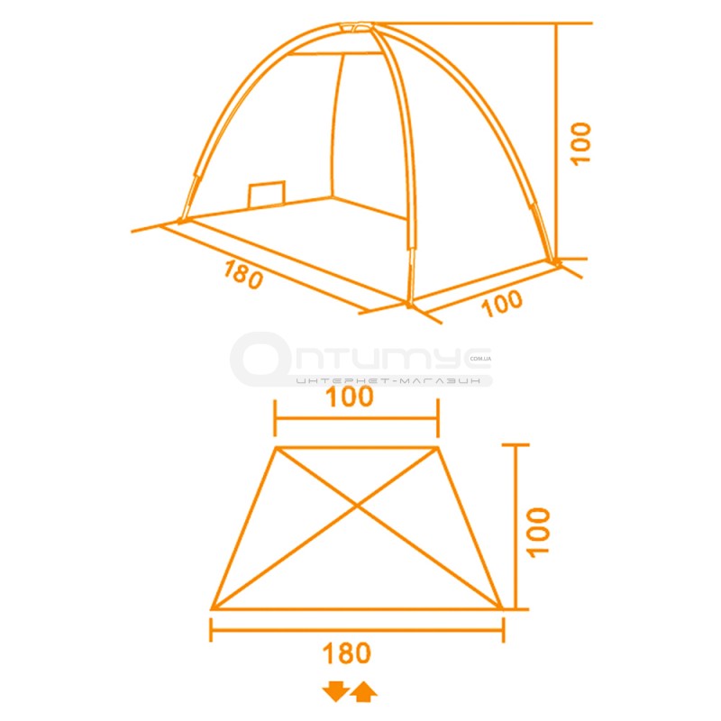 - Розмір розкладеної намети, ВхШхД, см1: 100x180x100