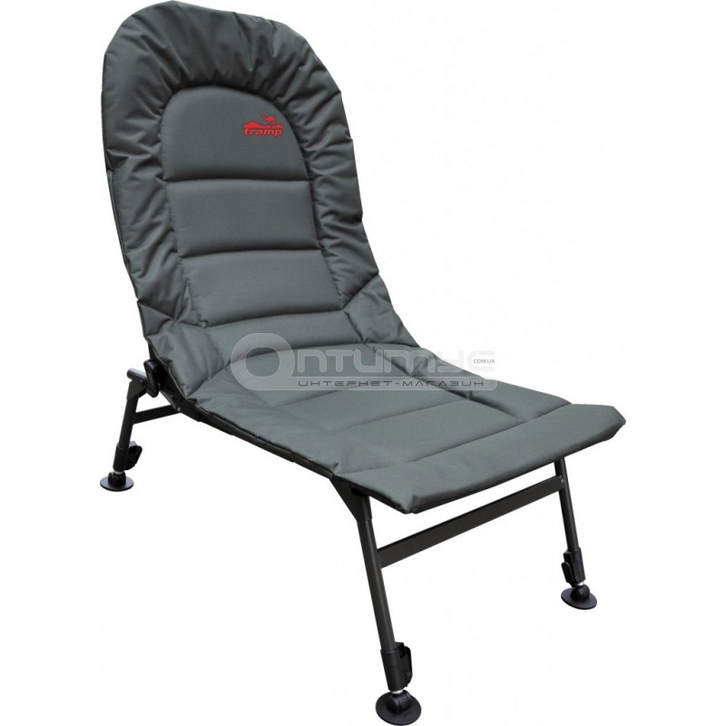 Коропове крісло Tramp Comfort TRF-030 - модель, оснащена надійним механізмом регулювання кута нахилу спинки, яким просто і зручно скористатися навіть з сидячого положення. Завдяки регулюванню висоти ніжок ви можете встановити це крісло навіть на схилі дамби. Стійкість крісла забезпечують широкі опорні насадки на ніжки. Матеріал сидіння - поліестер підвищеної щільності з вологозахисним PVC покриттям. Оптимально для великих і рослих чоловіків.