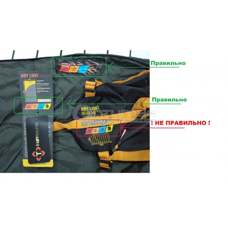 P.S. Шановні покупці, зверніть, будь ласка, увагу – правильні (відповідні дійсності) температурні характеристики спальника-ковдри Tramp Airy +15/+10/-5 вказані на інфо-планці, вшитій усередині спальника та на бірці-хенгтезі.