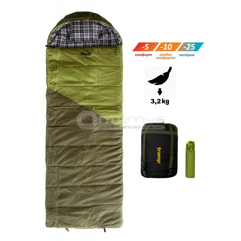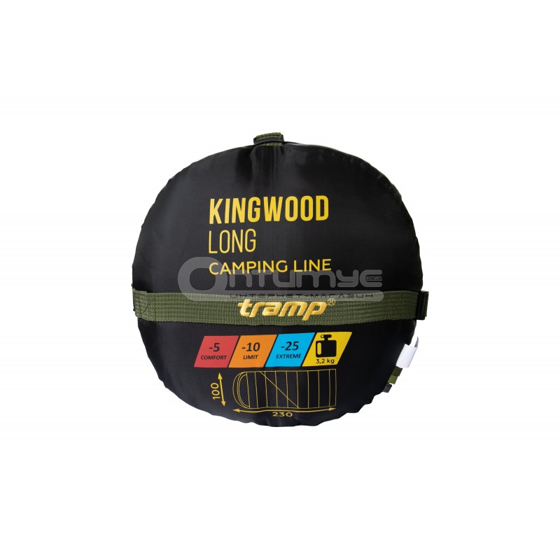Спальний мішок Tramp Kingwood Long темно-оливковий - надтеплий та просторий «зимовий» спальник-ковдра з підголовником на справді холодну погоду. Поєднує високий рівень захисту від холоду та можливість комфортно виспатися «як удома». Ця модель – рідкісний випадок, коли спальник-ковдра буде так само ефективний у зимовий період як спальник конструкції кокон.