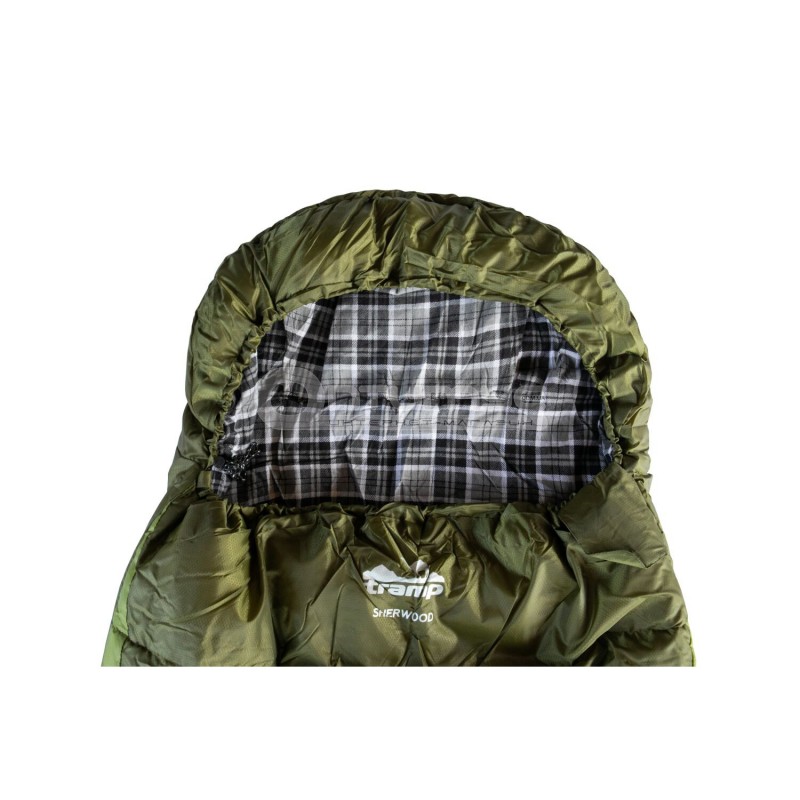 Спальний мішок Tramp Sherwood Long темно-оливковий - ковдра з підголовником, що поєднує комфорт і універсальність використання. Спальник для тих хто бажає ночувати затишно і не скуто. Призначений для кемпінгу, риболовлі, полювання подорожей та навіть домашнього використання у повсякденному житті. Оптимальний час використання весна-осінь, а також чудове рішення для тих хто мерзне навіть літніми ночами. М'яка приємна на дотик фланелева підкладка. Розстебнувши спальник, можна отримати велику двоспальну ковдру або м'яку і теплу ковдру для дитячих ігор або веселого сніданку на природі. Long – подовжена та розширена модель для високих та широкоплечих користувачів.