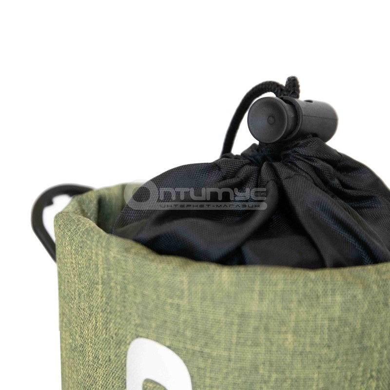 Доступ у середину чохла виконаний у вигляді тубуса із затяжкою на шнурку, що дозволяє легко поміщати або діставати термос із чохла.