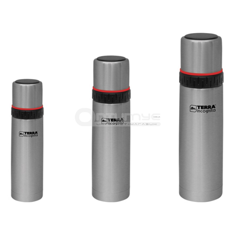Термос Terra Incognita Bullet 500. Термоса BULLET - стильні та практичні термоса від "TERRA INCOGNITA". Стінки зроблені з легкої, міцною і стійкою до пошкоджень харчової 100% нержавіючої сталі. Вакуумна ізоляція стінок дозволяє зберігати напої гарячими або холодними протягом 24 годин. Обтічна форма дозволяє без проблем поміщати і витягувати термос з рюкзака. Внутрішня пластикова різьбова пробка надійно захищає від протікання і дозволяє наливати рідини повністю не розкручуючи її. Теплоізольована гуртка зберігає напій гарячим і не дасть обпекти руки або губи.